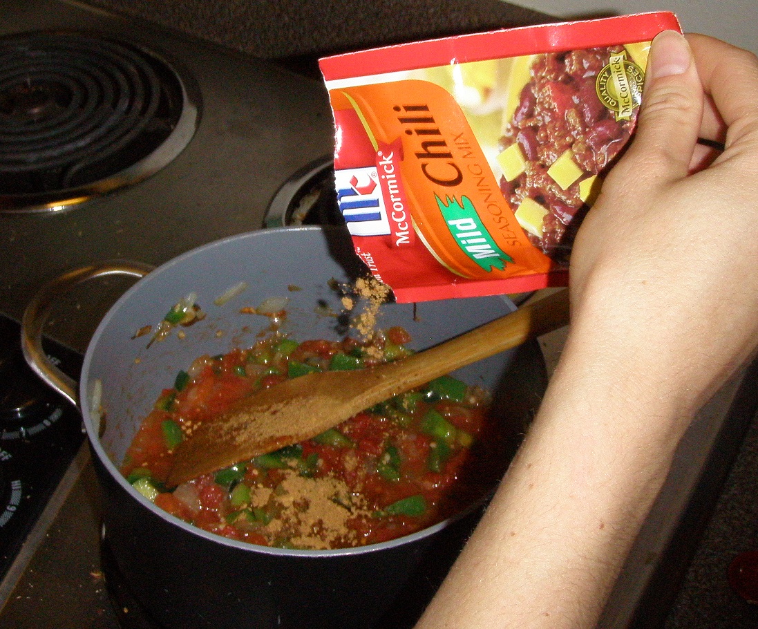 Heat the oil in your chili pot over medium high heat and add your onion and garlic. Saute until the onion is soft and golden brown.