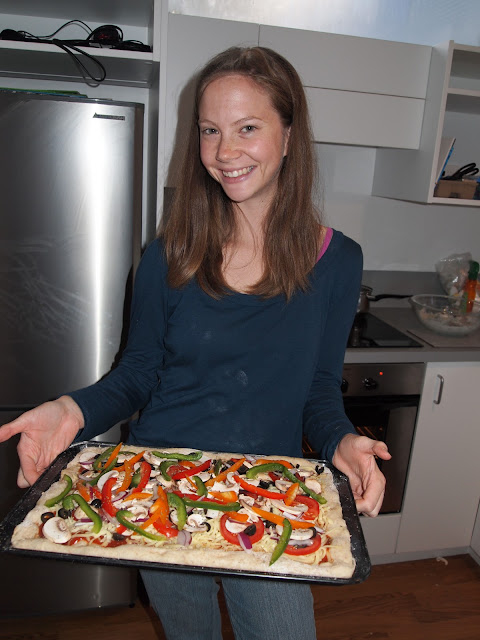 Many years ago, I stumbled upon this recipe and it has been our go-to pizza crust ever since. I can't really say that I think it tastes like Papa John's crust, but it is both chewy and crunchy, so it's a keeper. I always follow the recipe given (alternating honey and sugar, depending on our preference- both are good), but I make one pizza out of it, usually in a 9x13 cookie sheet. Makes it extra fluffy! Add your favorite sauce and toppings and dig in!